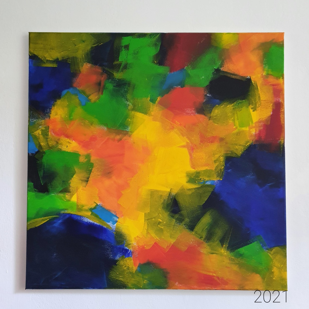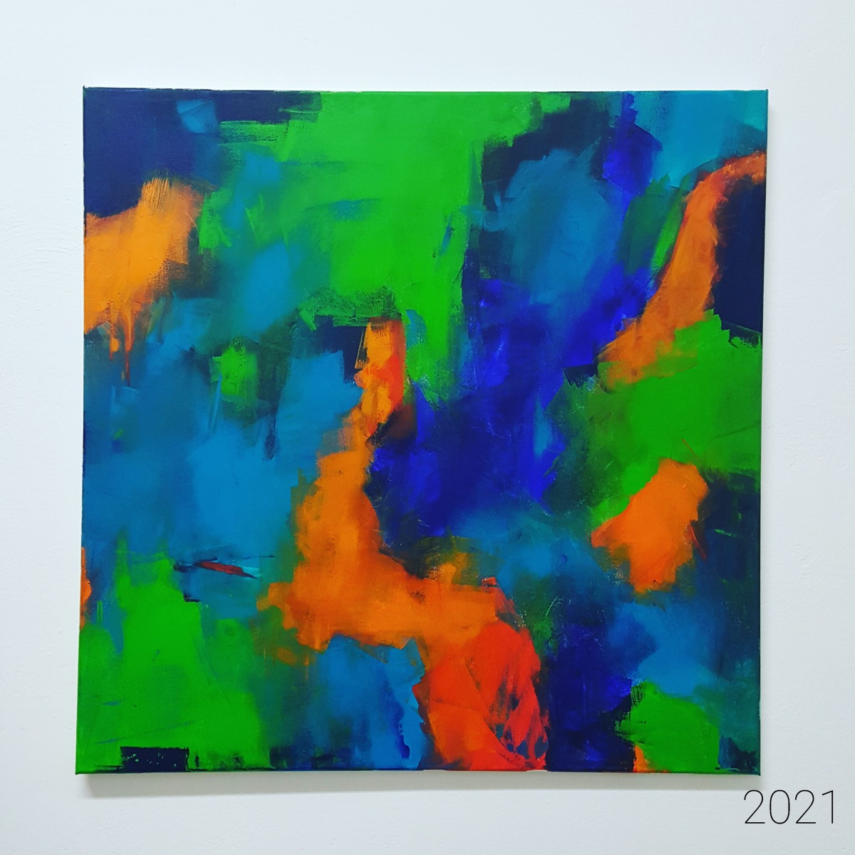 Diese in freier sensualistischer Geste, ohne Vorzeichnung, auf die Leinwand aufgetragenen Farbflächen, entziehen sich einer eindeutigen Bedeutungszuschreibung; vielmehr eröffnen sie Spielraum zur Interpretation. Sie sind zunächst eben Kompositionen von Farben & Formen, die auf fast schon sinnliche Weise zwischen diesen beiden Polen changieren, balancieren, Brüche freilegen – dabei jedoch nie zufällig wirken.
